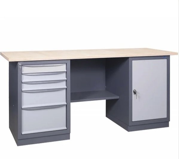 Garažams, dirbtuvėms ir sandėliams pritaikytas, tvirtas ir labai universalus darbo stalas. Galite komplektuoti šį darbastalį užsisakydami praktiškus, Jūsų darbo vietą gerinančius, darbą lengvinančius ir poreikius atitinkančius priedus. Stalviršis yra 40 mm storio ir pagamintas iš alyva grūdintos medienos plaušo plokštės. Tai nebrangus ir labai universalus produktas, kuris tiks nedidelėse dirbtuvėse ir pan.